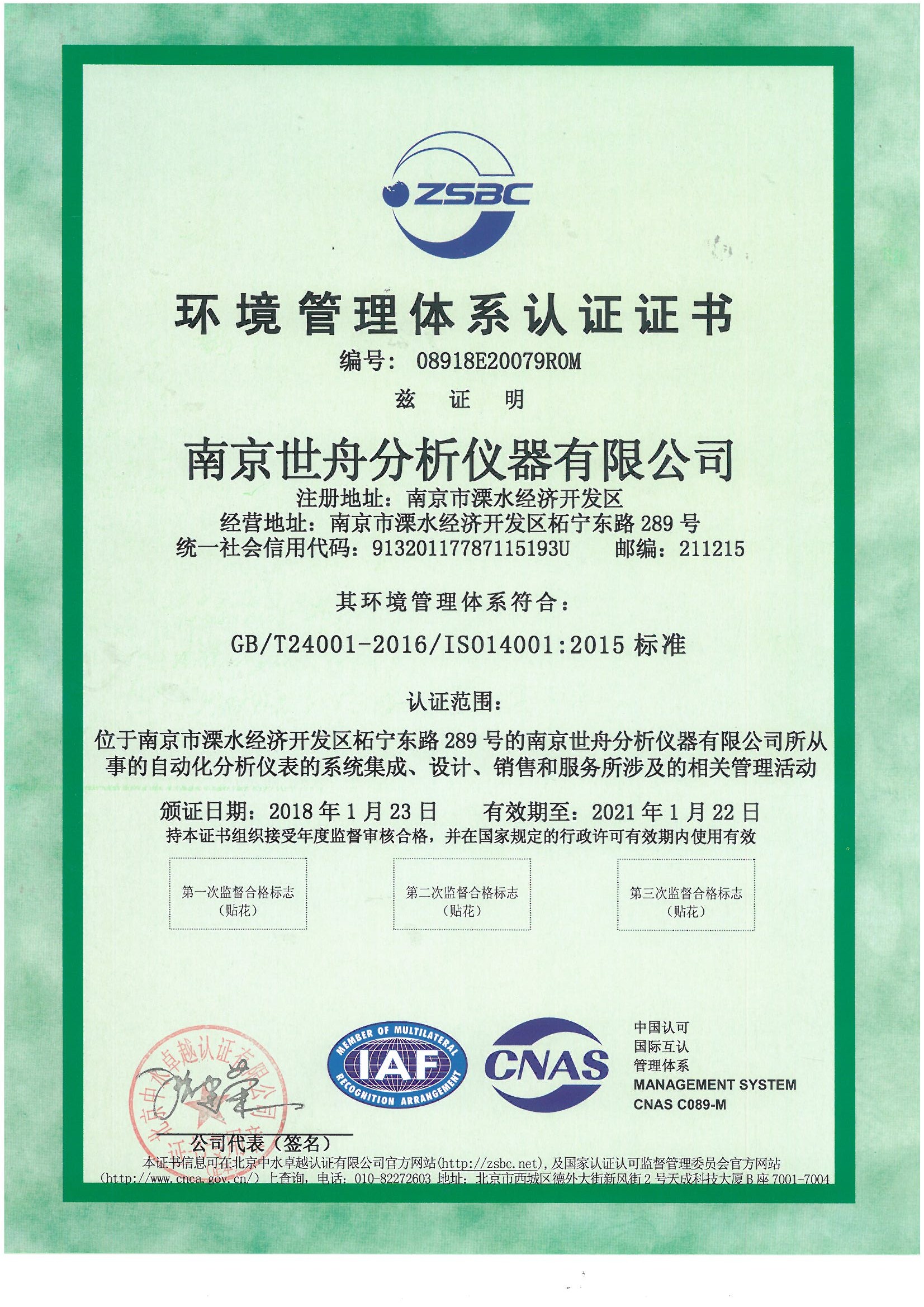 南京世舟通过环境管理体系认证